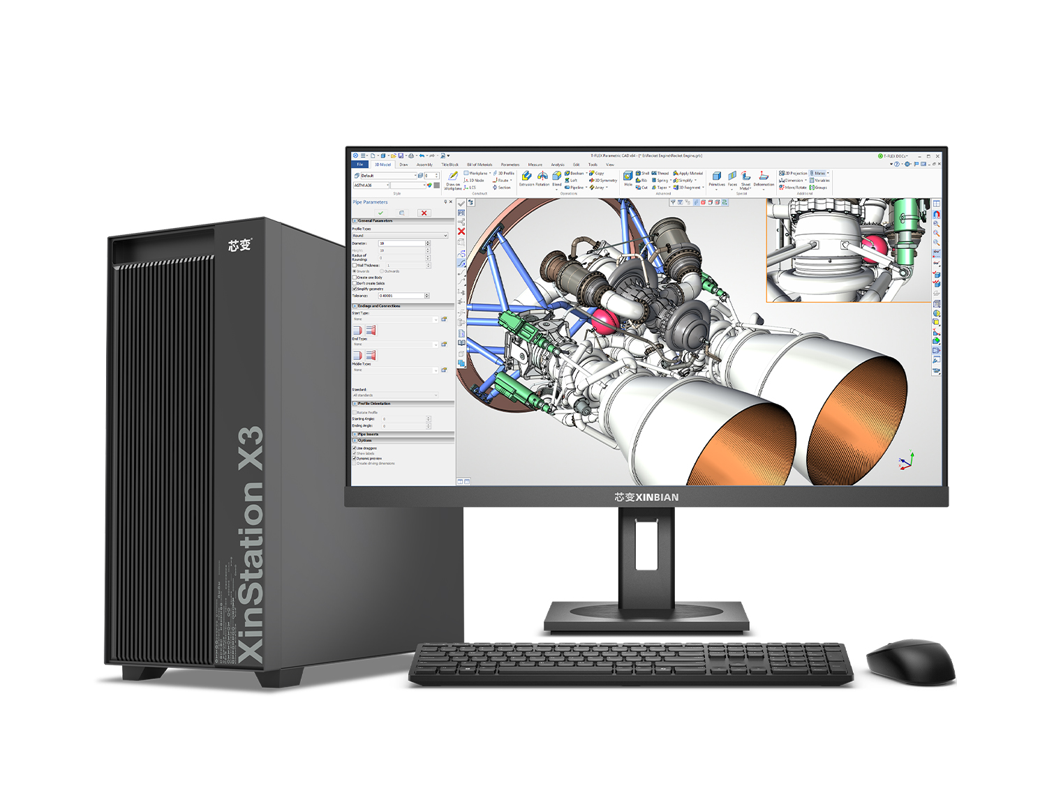 X3 工作站整体设计融合工业美学与实用功能,前面板采用全金属材质与 CNC 纵向格栅造型,彰显硬朗科技感。顶置接口集成了 Type-C、USB3.0 及音频接口,使日常连接与操作触手可及,大幅提升工作效率,让您专注于核心任务。