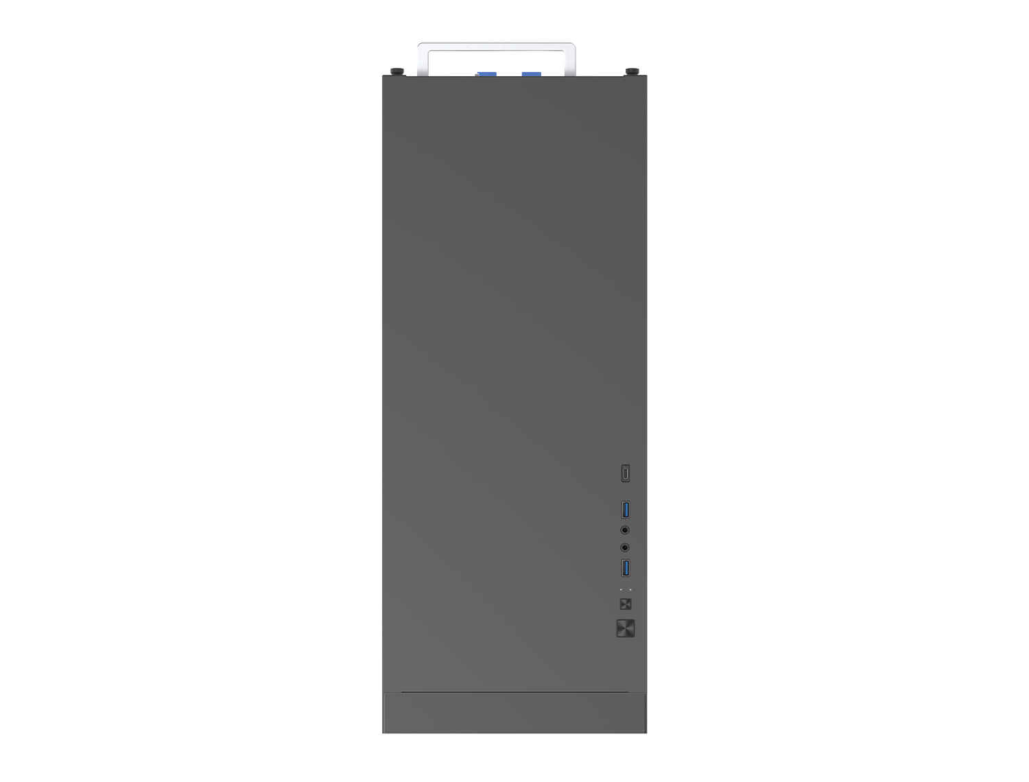 机箱采用铝合金前面板与纵向格栅设计,顶置 Type-C、USB 3.0 及音频接口,操作便捷。配备 10GbE 万兆网口与 IPMI 远程管理,支持 1+1 热插拔冗余电源,保障 7x24 小时稳定运行。