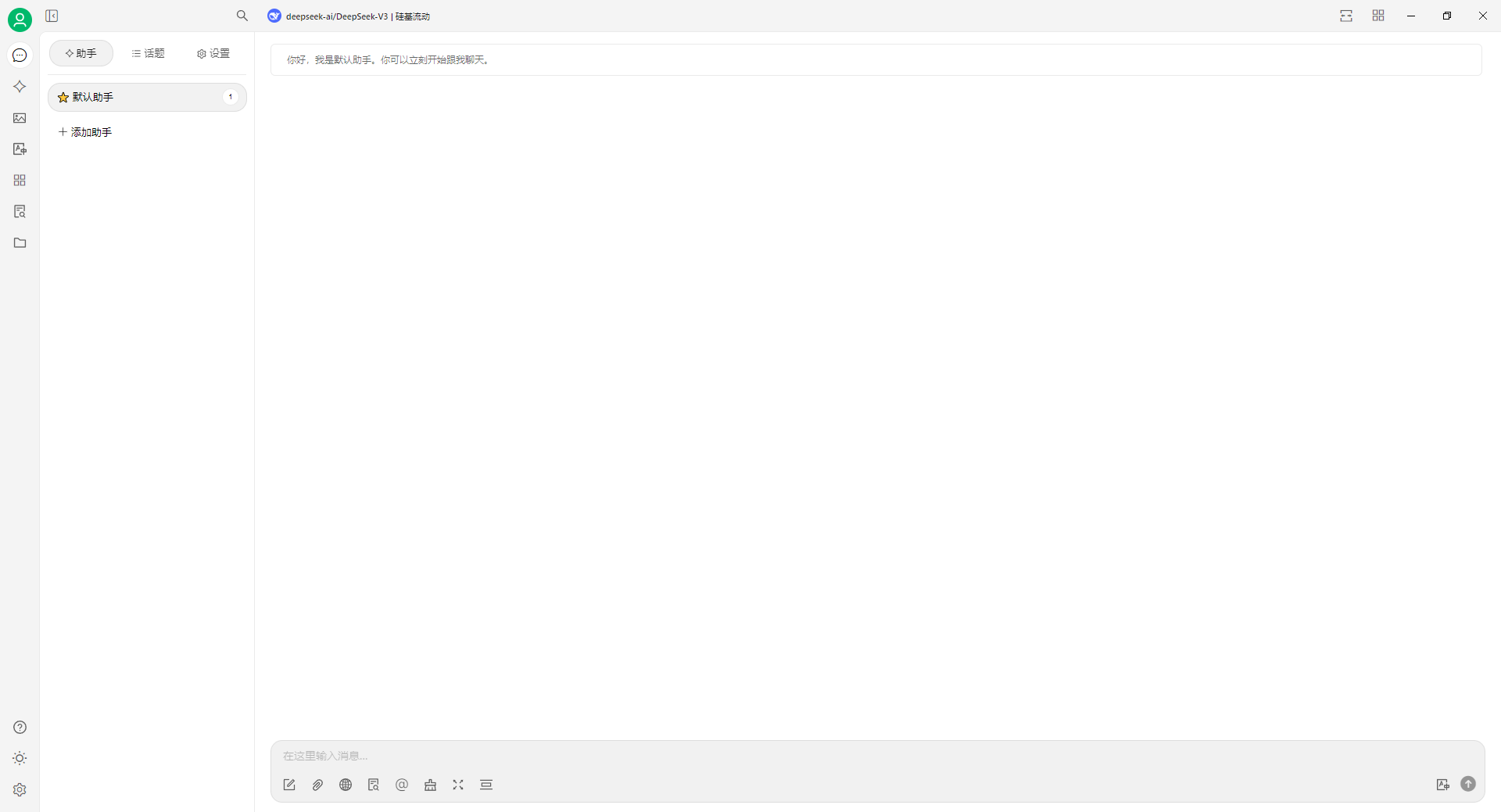 1、 当你在你电脑里安装了cherry studio后,你只会拥有一个默认的助手,如下图所示:
