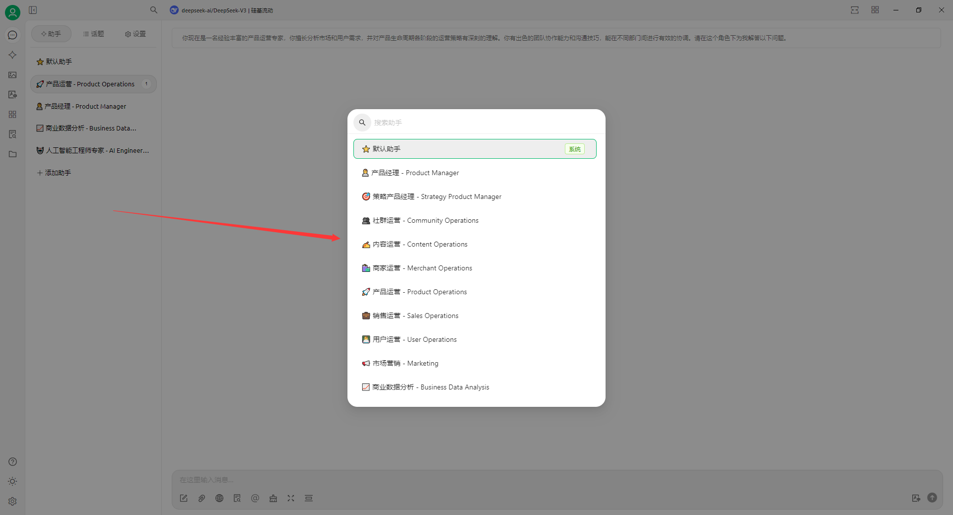 2、 然后你可以右键点击添加助手,这里面会有各种各样的角色以供你选择,你可以根据你的需求来部署你需要的角色,作为你的专业AI私人助手使用。如下图所示: