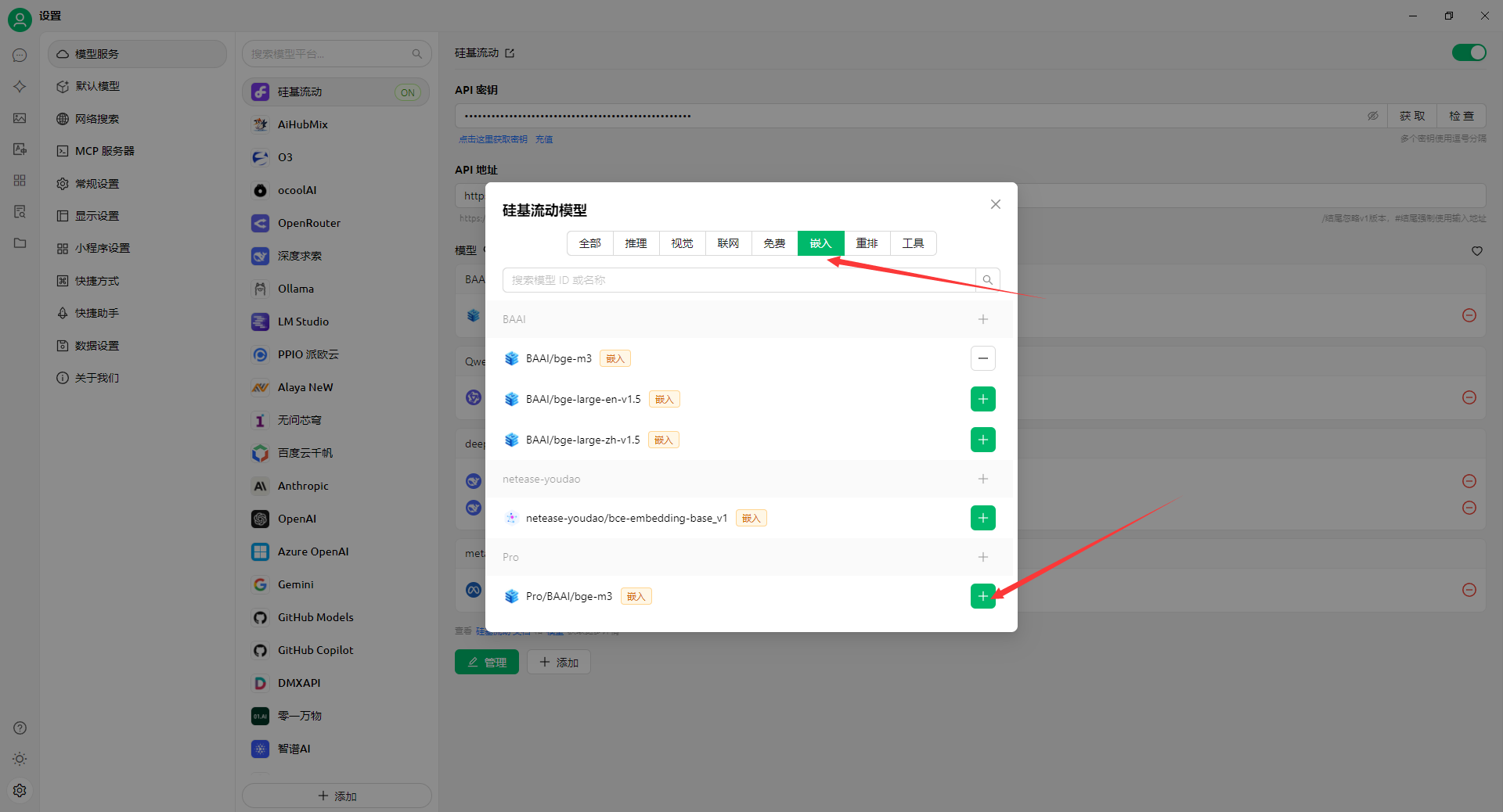 4、 点击上方的嵌入式,选择Pro/BAAI/bge-m3
